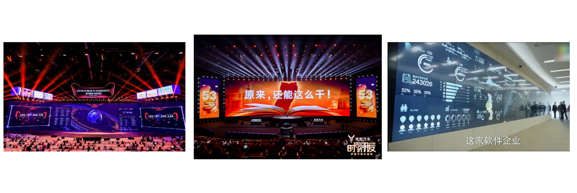 这个大屏其实出现过在很多重大场合,比如:每年的618、双十一,天猫整点时刻直播战绩;电视剧《人民的名义》也出现过,满屏的数据,在大屏呈现下更加的鲜活;展会上的开幕仪式、交易大厅等等场景应用,怎么酷炫怎么搞,让见者无不惊叹:“高端大气上档次!”