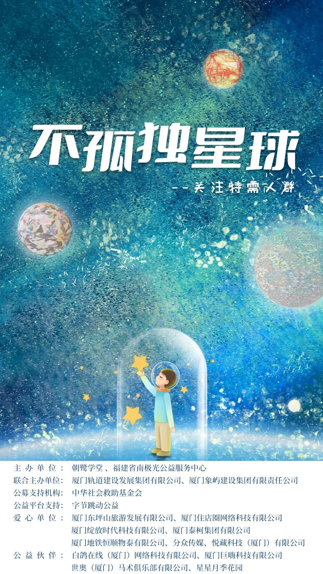 厦门巨嗨科技作为本次主题活动公益伙伴,在此诚挚地邀请您和我一起前往“不孤独星球”,用温暖给予他们闪光的力量。