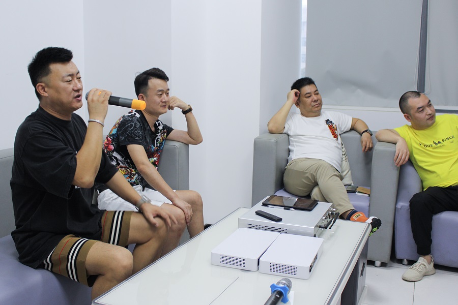 带着“巨嗨产品在实际场景使用时会产生什么样的化学反应?”这个问题的思考,他她集团董事长段昊先生及合作伙伴共同在巨嗨科技演播室体验了语音点歌、新歌曲库、唱歌奖励金等功能,短短的音乐交流,大大拉近了他们对巨嗨产品的认同感。