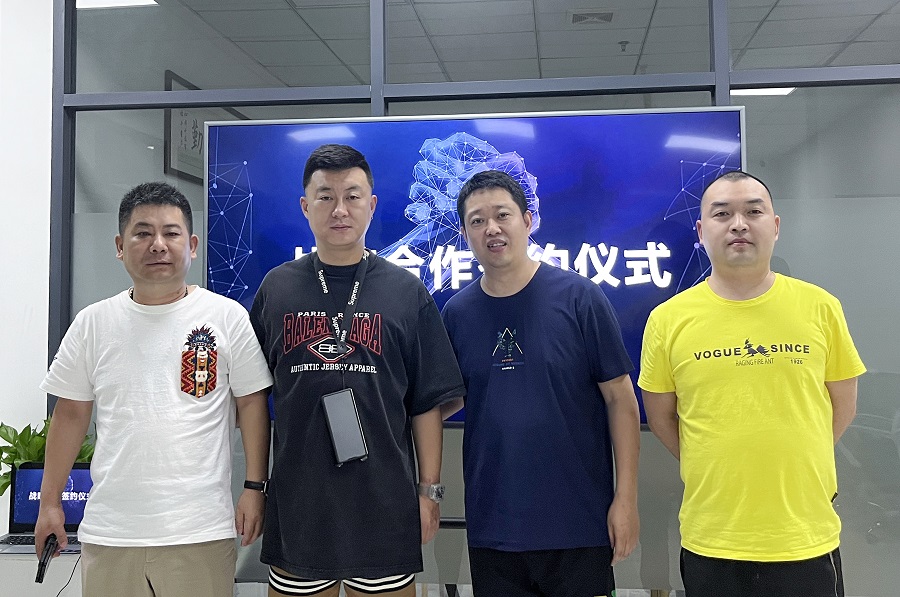 ▲他她集团董事长段昊先生及合作伙伴和巨嗨科技总经理罗安武先生