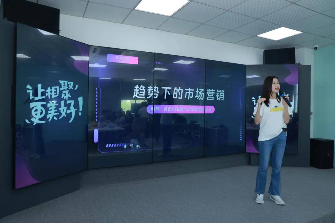 紧接着,副总廖卓华针对“AI趋势下的市场营销策略”做了简单分享,聚焦如何高效利用AI技术提升自助KTV的吸引力。