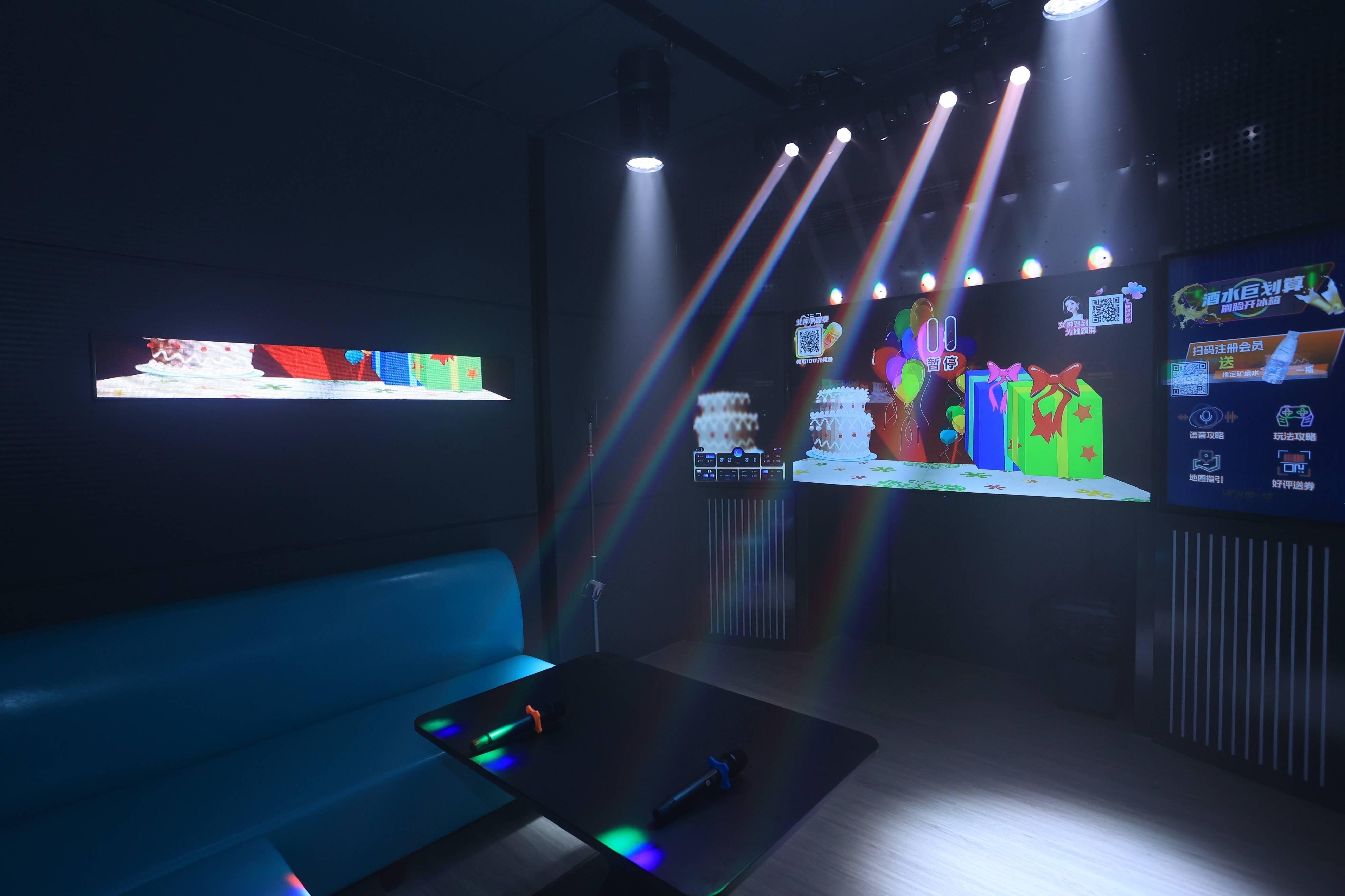 门锁/空调/音响一键集成,包厢秒切换K歌、观影、派对模式。