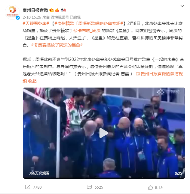 当周深的《星鱼》在冰雪运动赛场上响起,一种梦幻联动的感觉油然而生。高亢的声音瞬间让体育场面积扩大好几倍,周深在新歌《星鱼》里歌唱着勇往直前,向光而行的信念,和奥运健儿坚强不屈,奋斗拼搏遥相呼应,他的歌声和冰雪健儿的赛场上的运动身姿完美契合。