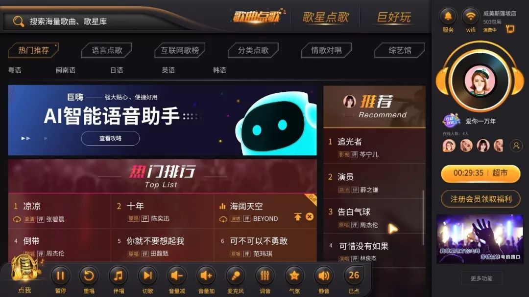 巨嗨AI点播系统无需在包房增加任何设备,即可完成传统KTV的升级转型;