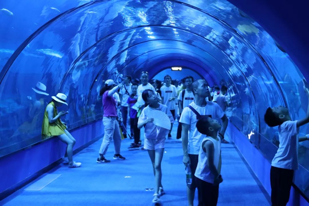 海洋馆里鱼儿种类繁多,有来自世界各地的珍稀淡水鱼、鱼群游弋其中,令人眼花缭乱,还有展馆讲解员陪同科普各种海洋生物知识。