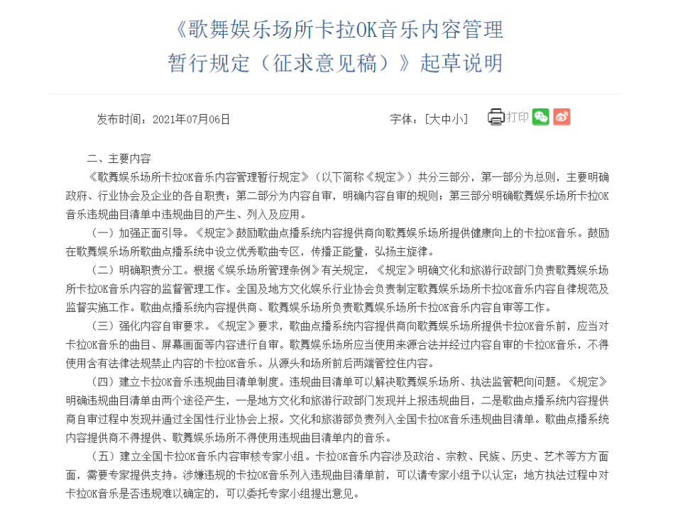 而近期,文化和旅游部也起草了说明:将建立卡拉OK音乐违规曲目清单,意味着卡拉OK曲库将要加入自审大军。