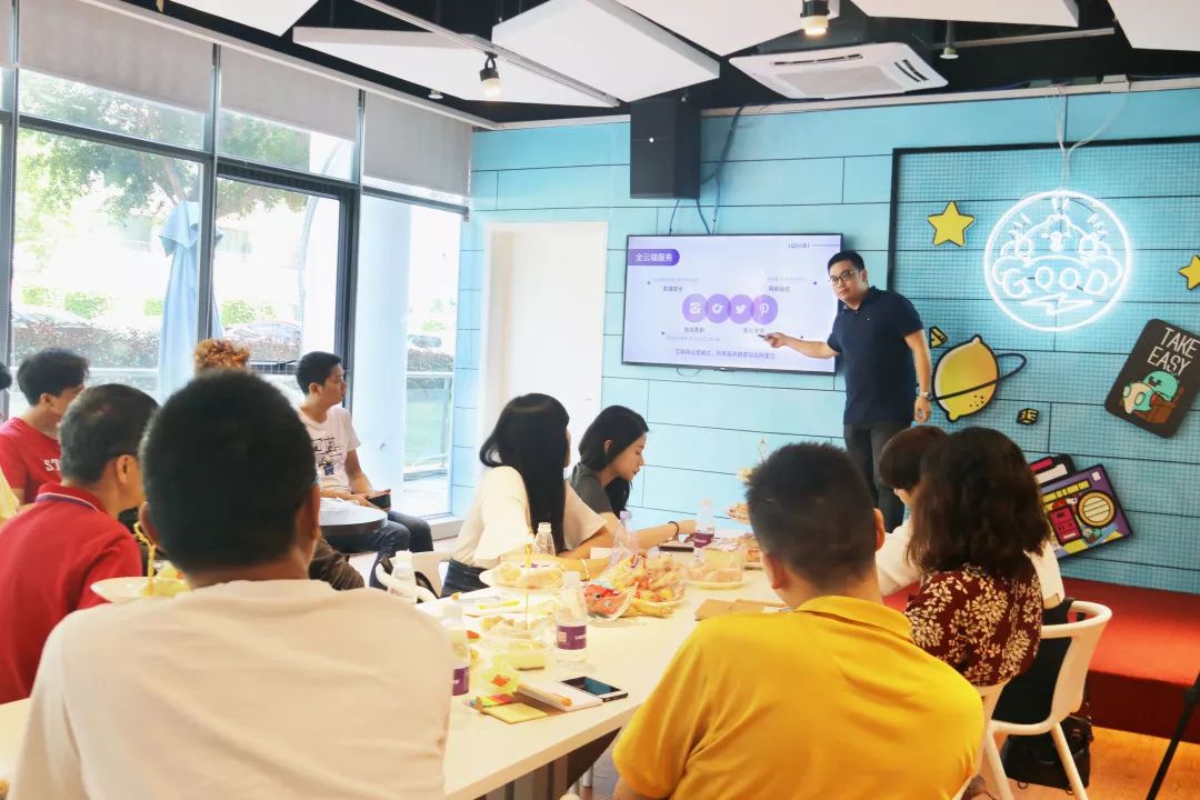 交流会结束后,巨嗨技术支撑部门经理郭戴娣为与会人员介绍巨嗨产品最新功能,分拆讲解了新功能在实际运营中的具体操作流程,并对技术人员进行了手把手的实操指导。